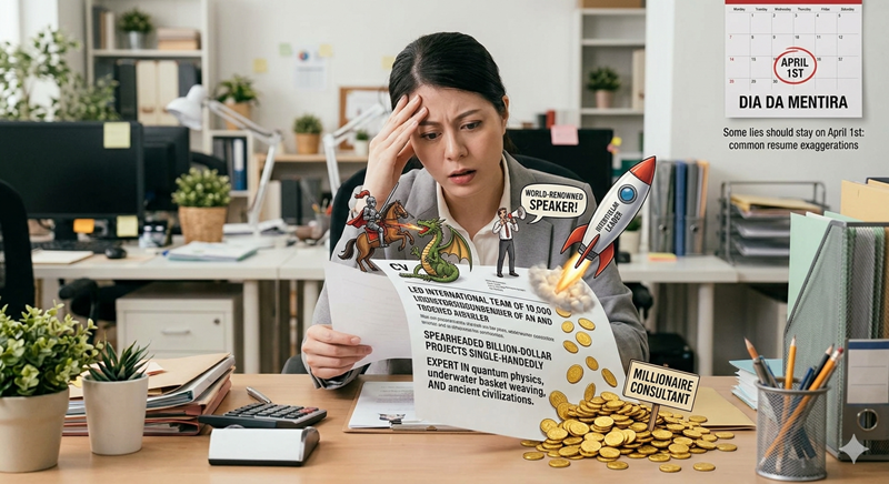 Se os idiomas já sofrem com exageros, a experiência profissional não fica atrás -passando por pequenos ajustes nas datas de emprego ou uma “atualização” no título do cargo. Um analista que se tornou “coordenador” no papel, ou um período de experiência que ganhou alguns meses a mais para parecer mais sólido – essas são algumas das liberdades criativas mais comuns.