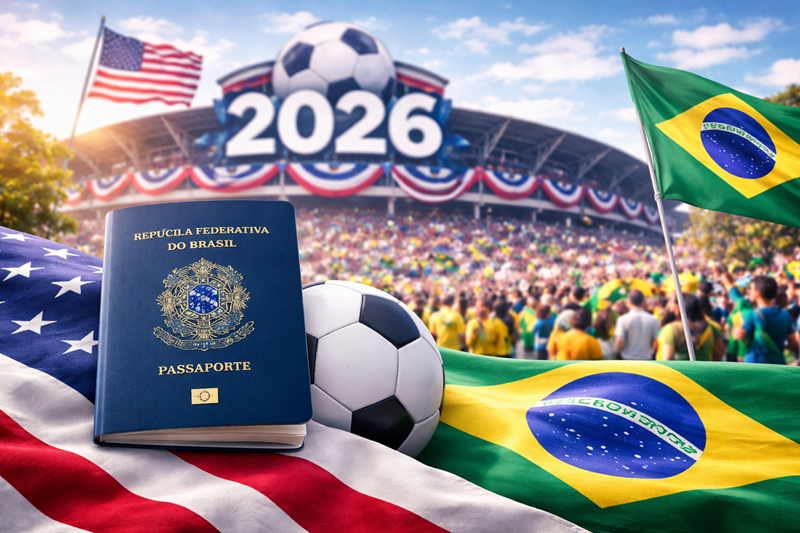 Para assistir aos jogos nos Estados Unidos, o brasileiro precisa do visto de turismo B1/B2, e não há qualquer flexibilização automática por causa do evento.