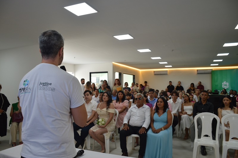 O ponto alto do evento foi poder realizar o sonho do casamento para 20 casais. Com o apoio do Tribunal de Justiça do RN (TJRN), em uma cerimônia comunitária, conduzida pela Juíza de Direito Fátima Maria Costa Soares de Lima, os noivos puderam dizer o “sim” mais esperado de suas vidas. Entre a leitura de Coríntios 13, música e flores, a celebração foi a concretização de direitos transformada em oficialização do matrimônio.