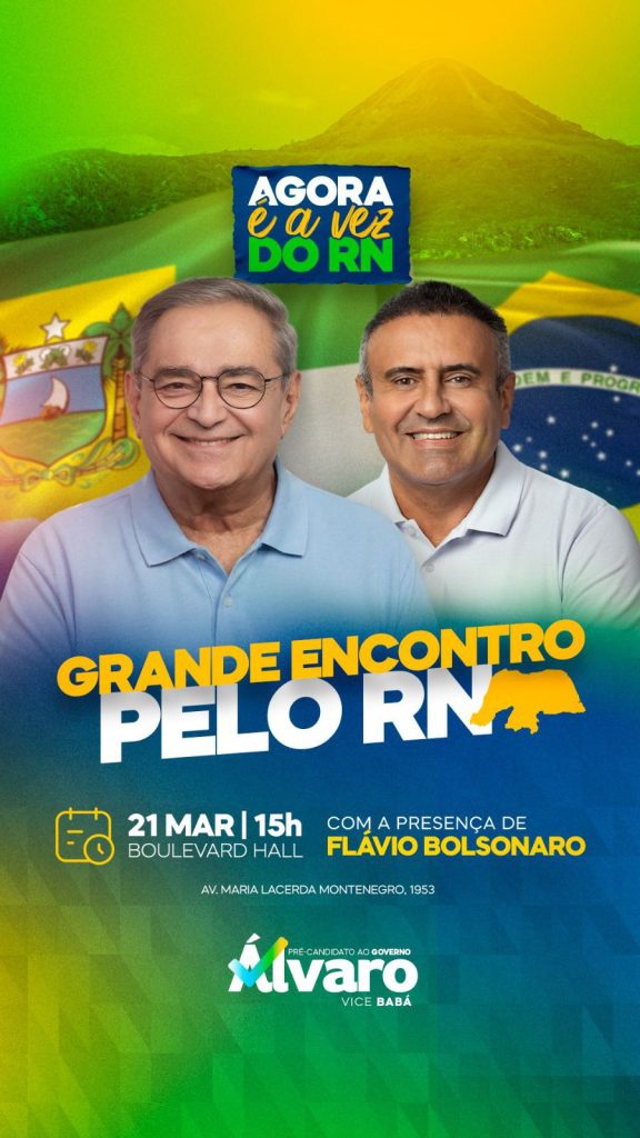A atividade reunirá lideranças políticas do estado e contará com a presença dos pré-candidatos ao Governo do RN, Álvaro Dias, e vice, Babá Pereira. Também estará presente o senador Rogério Marinho, presidente estadual do PL-RN.