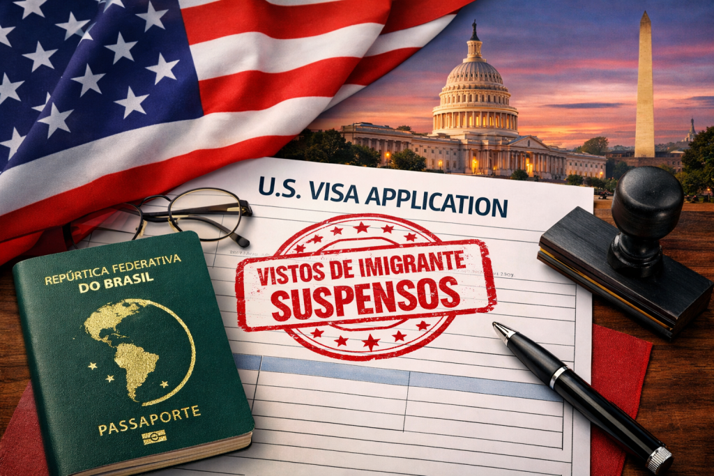 A suspensão de vistos de imigrante afeta apenas categorias de residência permanente. Brasileiros que solicitam visto de turismo, negócios, estudo ou trabalho temporário não terão impacto. O acompanhamento de informações oficiais é essencial para qualquer planejamento migratório.